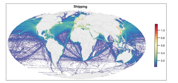 Cartographie des routes maritimes et de leurs impacts. Issue des travaux de Pirotta et al. 2018(13)